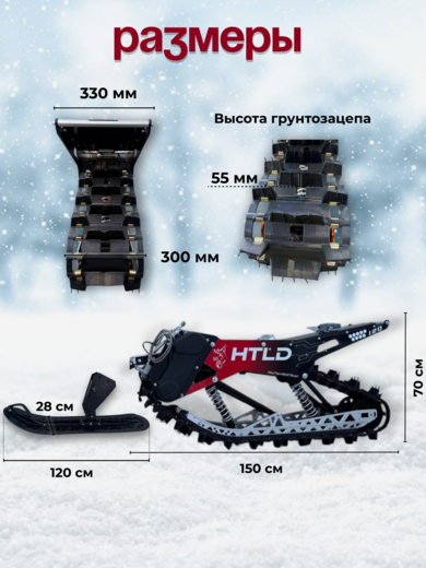 Мотобуксировщик длина 1450 ширина 500