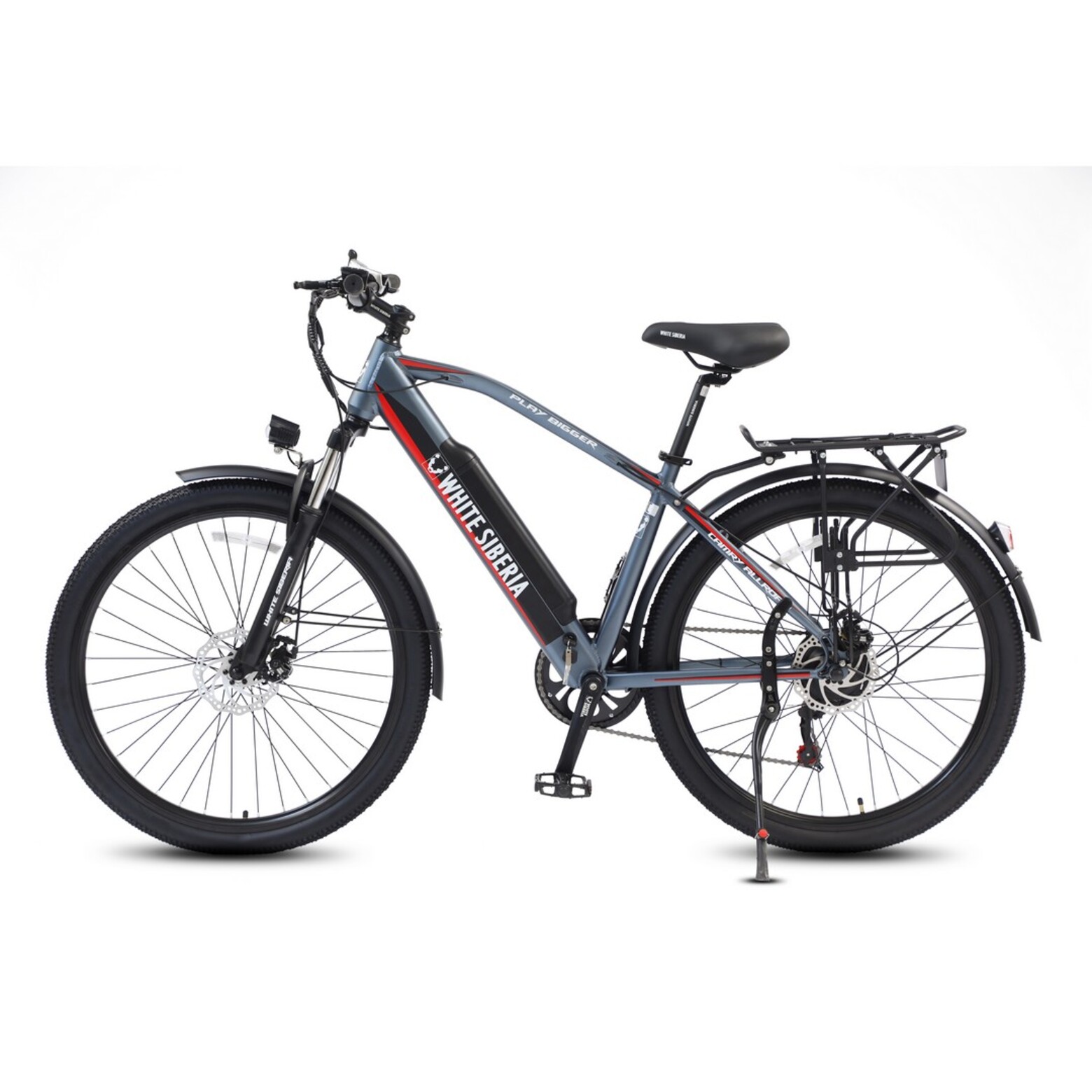 Электровелосипед WHITE SIBERIA CAMRY ALLROAD 500WПутешествие - лучшее лекарство! Просто поездка в лес, пригород - отличный способ отдохнуть от суеты городских джунглей. Но дальние поездки на велосипеде выматывают, изнуряют и потом нужен отдых от таких приключений... К счастью, есть способ сделать путешествия в лес или пригород доступным каждому!Туристический хардтейл CAMRY ALLROAD 500W создан для покорения любых дорог Российских городов и пригорода!Чем отличается CAMRY ALLROAD от одноклассников?Мощный электромотор на 500W отлично помогает на подъёмах в горку и экономит силы райдера во время дальних поездок! Он позволит вам взглянуть по-новому на покатушки!Рама из авиационного алюминия с интегрированной легкосъёмной батареей на 36V 11A. Окрашена порошковой краской - надёжно защищена и красиво выглядит, благодаря 4 вариантам расцветки.Лёгкая, но прочная - велосипед в сборе весит всего 23 кг!Колёса на 27,5 дюймов - отличное соотношение манёвренности и наката! А благодаря резине Kenda с универсальным рисунком протектора - ещё и отличное сцепление с различными типами дорожных покрытий.Металлические крылья на переднем и заднем колёсах полностью закрывают райдера от грязи, камней и брызг из-под колёс!Качественное навесное оборудование от фирмы SHIMANO, большой дисплей бортового компьютера с подсветкой, удобный лепесток газа, усиленный металлический багажник - всё это для вашего комфортного передвижения на комфортном и мягком сидении электровелосипеда CAMRY ALLROAD 500W.Дисковые механические тормоза спереди и сзади - просты и надёжны. В случае поломки - легко починить и вернуться в цивилизацию!Электровелосипед CAMRY ALLROAD - делает маленькие путешествия доступными каждому! Отдыхайте с комфортом!