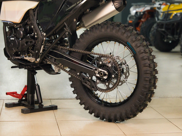 Размер и тип колес – 21х18 обода алюминиевые. Размер передней покрышки 80/100-21. Размер задней покрышки 120/100-18;