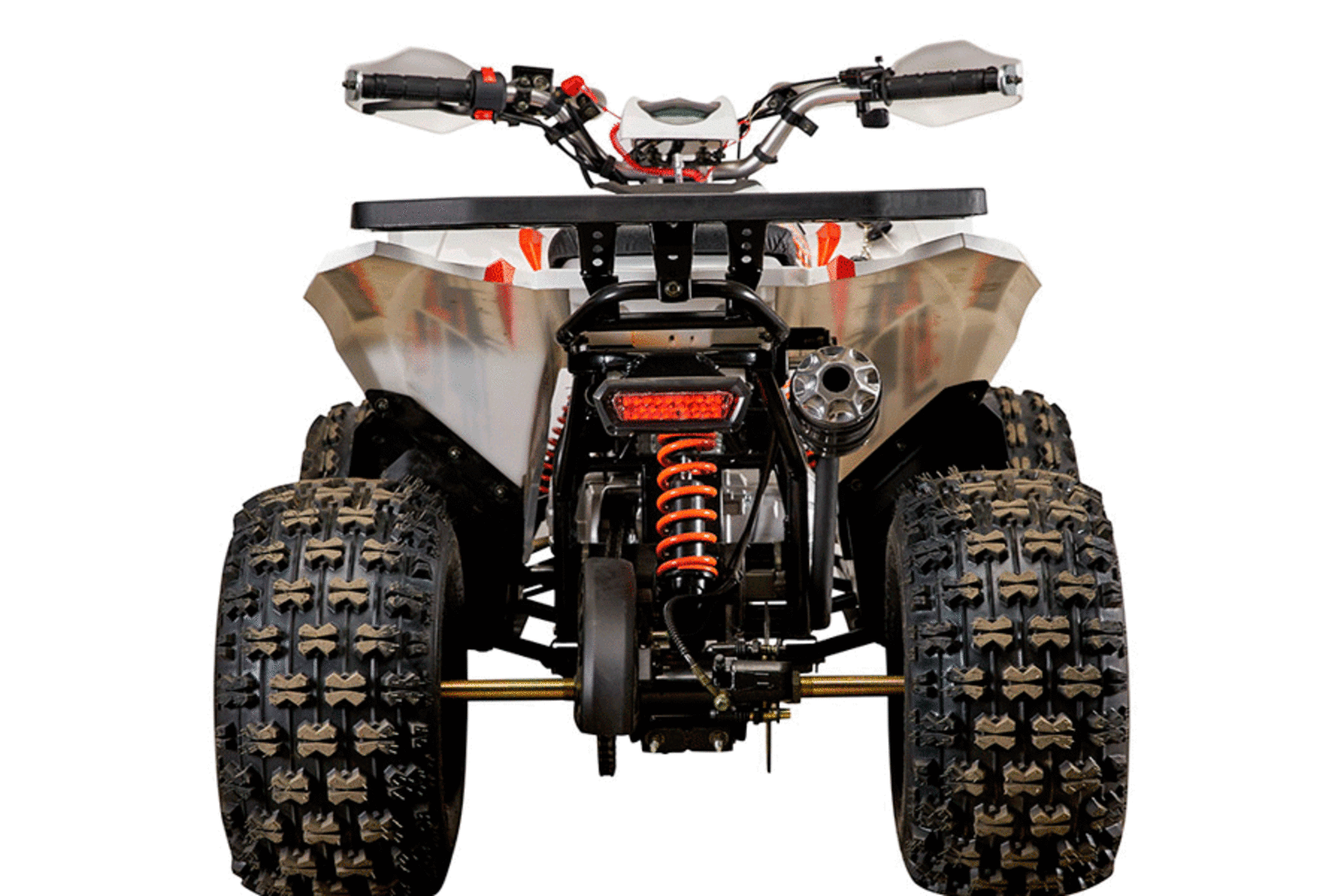 Спортивный экстерьер и модная гоночная многоцветная раскраска пластиковых частей корпуса привлекает внимание всех, кому квадроцикл попадается на глаза. Песочные шины повышенной проходимости с агрессивным протектором гармонично дополняют дизайн машины. Защита рук водителя, багажник, LED-спидометр, светодиодные фары и стоп-сигнал – всё это входит в базовую комплектацию АТВ.