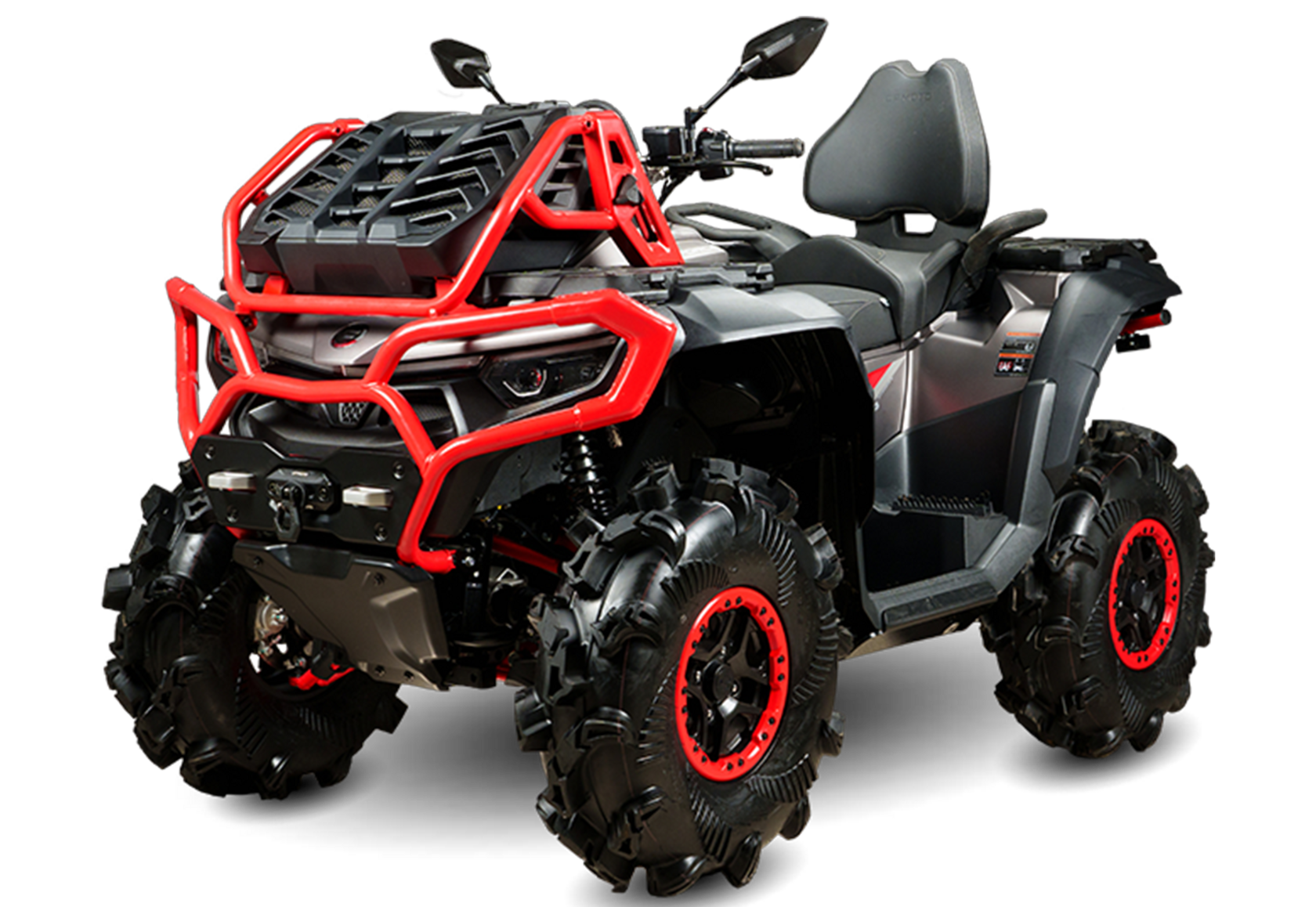 Разработанный для экстремалов и абсолютного бездорожья, новый CFORCE 1000 MV станет вашим безупречным спутником там, где не ступали нога обычного человека и колесо другого квадроцикла! Эта модель создана, чтобы выдержать самые сложные маршруты, где бы они ни пролегали.CFORCE 1000 MV идеален в глубокой грязи и глине, лесовозных колеях и на раскисших грунтовках, он дарит вам свободу передвижения вне зависимости от типа поверхности. Для него нет преград и авторитетов, это превосходный выбор для тех, кто уверен в себе и своих способностях райдера!Новинка создана для тех, кто не боится вызовов и готов покорять самые сложные маршруты. Благодаря увеличенному дорожному просвету в 334 мм и 30-дюймовым грязевым шинам CST SLUDGE HAMMER вы сможете уверенно двигаться по труднопроходимым участкам, сохраняя управляемость и сцепление колес с любой поверхностью. Поднятая на 200 мм лебёдка и специально разработанные подножки обеспечивают улучшенную проходимость, а прочные защитные элементы сохранят технику от повреждений во время поездок по сложным рельефам и обеспечат необходимую безопасность райдеру.В сердце квадроцикла расположен высокоэффективный двигатель третьего поколения мощностью 90 л. с., который гарантирует высокую производительность и надежность. Оптимизированная трансмиссия и усовершенствованный вариатор, индикатор температуры вариатора, регулируемый угол радиатора и интегрированный воздухозаборник — все эти передовые технологии позволяют CFORCE 1000 MV оставаться эффективным даже в условиях интенсивной эксплуатации на сложном бездорожье.Присоединяйтесь к тем, кто ценит адреналин и готов к новым открытиям и свершениям!На квадроцикле допускается выезд на дороги общего пользования. Дополнительные преимущества:– регулируемый вынос радиатора;шноркели для преодоления глубоких водных преград;