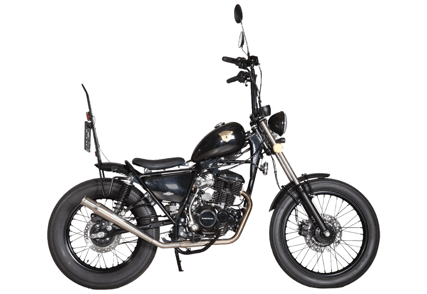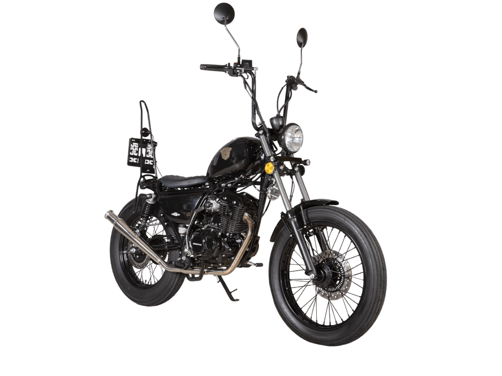 Мотоцикл GROZA Chopper 150 – стильный и лёгкий круизёр с классическим силуэтом и предсказуемым поведением на дороге. Подойдёт как для начинающих райдеров, так и ддя тех, кто ищет компактный байк для ежедневных городских поездок или неспешных прогулок по трассе.В основе лежит одноцилиндровый 4-тактный двигатель объёмом 150 см³, выдающий 12,5 л.с. Благодаря инжекторной системе подачи топлива и воздушному охлаждению мотор демонстрирует стабильную работу, простоту обслуживания и надёжность в эксплуатации. Механическая коробка передач оснащена 5 ступенями.На мотоцикле используются спицованные колёса. Спереди установлено колесо диаметром 19 дюймов на телескопической вилке. Сзади диаметр колеса 17 дюймов, а в роли подвески выступают 2 пружинно-гидравлических амортизатора. Для торможения установлены дисковые гидравлические тормоза с ABS на обоих колёсах.Топливный бак вмещает 6,8 литра топлива. Габариты мотоцикла 1965×705×1295 мм, вес 115 кг. Колёсная база 1300 мм.Комплектация и внешний вид мотоцикла могут отличаться в зависимости от поставки. Изображение на сайте не гарантирует наличие тех или иных опций. Уточняйте информацию при оформлении заказа.