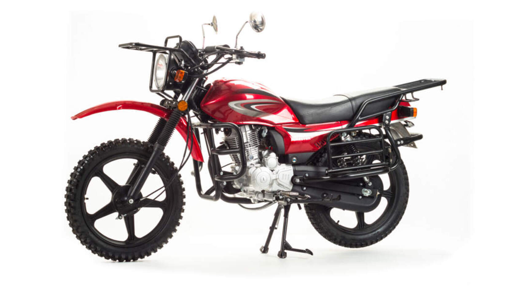 Форестер 200 доступен в красном цвете и отличается классическим функциональным дизайном. Оснащён фарой дальнего и ближнего света, светоотражателями, большим стоп-сигналом. Это настоящая рабочая лошадка с хорошим запасом прочности для тяжёлой каждодневной работы.Диаметр колёс — 18 дюймов. Покрышки с крупными шипами позволяют преодолевать препятствия, уверенно ездить по бездорожью. Большой металлический бак даёт возможность ездить на большие расстояния, не беспокоясь о наличии заправок. Мотоцикл оснащён спидометром с электронным датчиком переключения передач, тахометром. Передние и задние тормоза барабанные, легко регулируются, при необходимости их можно подтянуть даже в полевых условиях.Задняя подвеска включает 2 надёжных амортизатора. Руль обычного сечения с низким подъёмом защищён специальной металлической дугой от повреждений при падении мотоцикла. Также на руле расположен подсос, что позволяет заводить Мотолэнд Форестер, не вставая с сиденья. Мотоцикл Форестер 200 оснащён карбюратором и одноцилиндровым четырёхтактным двигателем 200 см³ с большим ресурсом и тихой работой за счет балансированного вала. Механическая трансмиссия содержит 5 передач. Для запуска двигателя можно использовать электростартер и кикстартер. Мотоцикл Мотолэнд Форестер как многофункциональный трансформер при необходимости позволяет легко увеличить площадь полезной нагрузки. На руле размещён багажник с держателем груза. Также большой багажник есть в задней части мотоцикла, а над подножками встроены специальные увеличители площади для перевозки грузов. Вместительность, неприхотливость в обслуживании, работоспособность — всё это мотоцикл Форестер.