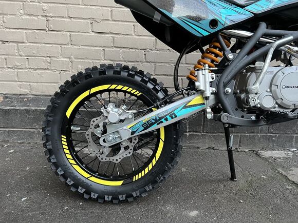 Представляем вниманию поклонников офф-роада и фри-райда питбайк Regulmoto Seven – новинку мототехники Regulmoto модельного ряда 2020 года. Regulmoto Seven – оптимальный выбор для райдера, который позволит своему владельцу совершенствовать навыки управления мототехникой на треке мотостадиона, а также получать максимальное удовольствие от офф-роад рейдов.В раме Regulmoto Seven установлен 125-кубовый 4-тактник YX с электростартером– этот двигатель отлично себя зарекомендовал в качестве надежного и простого силового агрегата. Подготовкой топливной смеси занимается карбюратор Nibbi PE19. Запуск мотора возможен как при помощи кнопки электростартера, так и привычной лапкой кика.Колеса питбайка размером 17/14 дюймов с усиленными алюминиевыми ободьями на 36 спиц «обуты» в качественную кроссовую моторезину Kenda. Установленные на колесах буксаторы предотвратят проворачивание покрышки и защитят камеры от возможных повреждений. Питбайк комплектуется фарой головного света; она включается при помощи поворота ключа в замке зажигания. В качестве элементов защитного обвеса используются пластиковые обтекатели типа CRF.Подбор комплектующих свидетельствует о полной готовности питбайка к покорению бездорожья. Среди стоковых компонентов мини-мотоцикла стоит отметить: