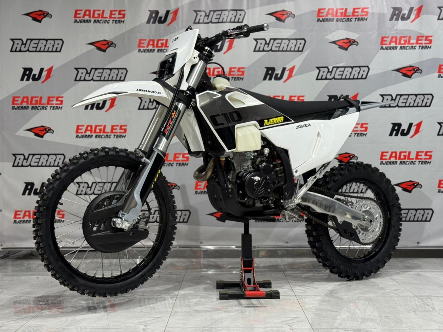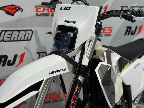 Мотоцикл AJERRA JOKER C10 YBS 300 — это воплощение современного эндуро с безупречным балансом мощности, управляемости и технологичности. Он создан на базе проверенного двигателя Loncin YBS300 176FM с водяным охлаждением, который обеспечивает стабильную работу, отличную тягу и плавную реакцию на газ. Надёжный мотор и карбюратор Nibbi Racing PWK 34 Black формируют сбалансированную связку, обеспечивающую уверенное ускорение и высокую производительность в любых условиях. Конструкция мотоцикла построена на прочной и лёгкой раме К10 завода AJ1 — это точная копия KTM 2024 года, что гарантирует устойчивость и отличную управляемость даже на сложных участках трассы. Внешне модель выполнена в стиле Husqvarna 2024 года: динамичный пластик придаёт мотоциклу агрессивный спортивный облик, а продуманные формы обеспечивают удобство посадки и контроль над техникой. Подвеска у JOKER C10 на высшем уровне: спереди установлена вилка HTW SCC длиной 930 мм с одним картриджем, а сзади — амортизатор HTW 2450 с прогрессией, обеспечивающий мягкость и точную работу при высоких нагрузках. Алюминиевый маятник, фрезерованные траверсы AJ1 2024 и усиленные обода UNISON 7116 создают прочную, но лёгкую конструкцию, идеально подходящую для скоростного эндуро. Мотоцикл оснащён тормозной системой AJ1 с дисковыми тормозами спереди и сзади, обеспечивающими надёжное торможение в любых условиях. Усиленный руль AL7075, фрезерованные ступицы и алюминиевая ведомая звезда AL7075 51 делают управление максимально точным и уверенным. Выхлопная система AJ1 2025 обеспечивает не только приятный звук, но и стабильную работу двигателя на высоких оборотах. Электрооборудование продумано до мелочей: мощный свет 2 EYE LED Generation 4 (50W), литиевый аккумулятор Skyrich, приборная панель в стиле KTM 2024, счётчик моточасов, защита рамы и мотора, передние и задние стропы, а также анатомическое антискользящее сиденье AntiSkid. Каждая деталь создана для удобства и надёжности. Покрышки AJ1 размером 80/100-21 спереди и 120/90-18 сзади обеспечивают уверенное сцепление с дорогой, а цепь KMC 520 Pro выдерживает высокие нагрузки при активной езде. Все болты формата TorX повышают надёжность и упрощают обслуживание. С высотой по седлу 94 см, мотоцикл AJERRA JOKER C10 YBS 300 ориентирован на опытных райдеров, ищущих надёжную и технологичную технику для эндуро и кросса. Эта модель сочетает в себе премиальные комплектующие, высокое качество сборки и выдающиеся характеристики, делая езду комфортной, управляемой и по-настоящему захватывающей.