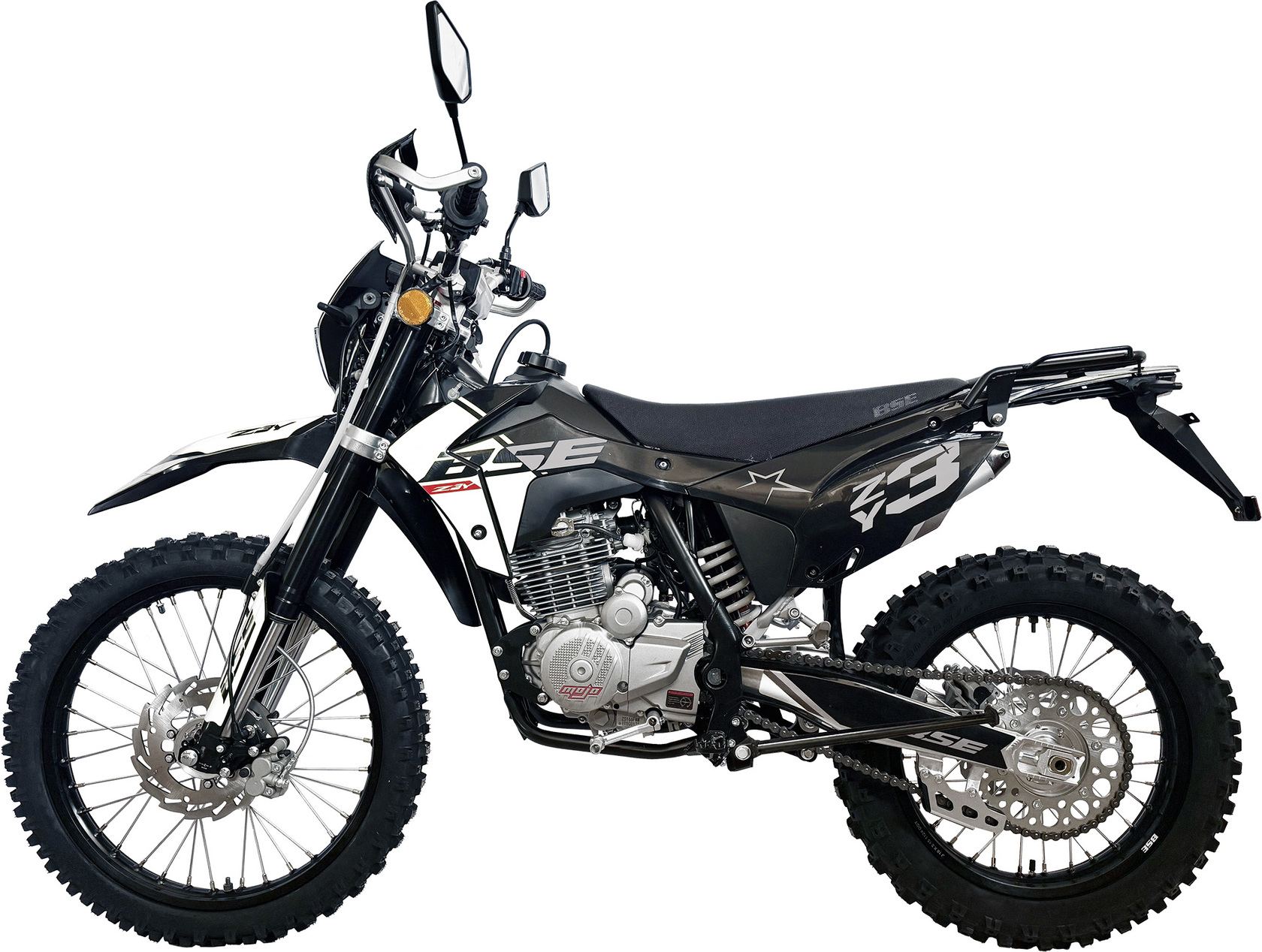 Где бы ни звала дорога – в городской поток, на загородный серпантин или в дикие тропы бездорожья – BSE Z3 Y готов к любым вызовам. Это настоящий среднеразмерный эндуро двойного назначения, сочетающий в себе надежность, мощность и комфорт. А наличие ПТС открывает перед вами все дороги: регистрируйте, заправляйте – и в путь! Мощь и контроль Сердце Z3 Y – 250-кубовый двигатель Zonsen ZS172FMM-5 с балансирным валом, выдающий 21 л.с. Карбюратор Nibbi обеспечивает стабильную работу, а усиленная стальная рама гарантирует жесткость и долговечность даже в жестких условиях. Легкий, маневренный, но при этом уверенный на любом покрытии – этот мотоцикл идеален для райдеров, ценящих динамику и управляемость. Комфорт и безопасностьГидравлические тормоза HSК Racing – мгновенная остановка в любой ситуации.Светодиодная оптика – яркий свет фар и четкие сигналы поворотов.Эргономичное сиденье и спортивный руль – удобство даже на долгих дистанциях.ЖК-панель приборов – все ключевые параметры под контролем.Готовность к бездорожьюПеревернутая вилка и регулируемая подвеска – плавность хода на ухабах.Внедорожная резина и усиленные обода – сцепление даже на сложном рельефе.Защита рук, багажник и надежная 520 цепь – никаких компромиссов в экстремальных условиях.Стиль, который впечатляет Агрессивный дизайн, рельефный пластик и спортивная посадка делают BSE Z3 Y не только технически совершенным, но и визуально эффектным мотоциклом. Это выбор тех, кто ценит свободу, адреналин и бескомпромиссное качество. BSE Z3 Y – твой пропуск в мир настоящих приключений!