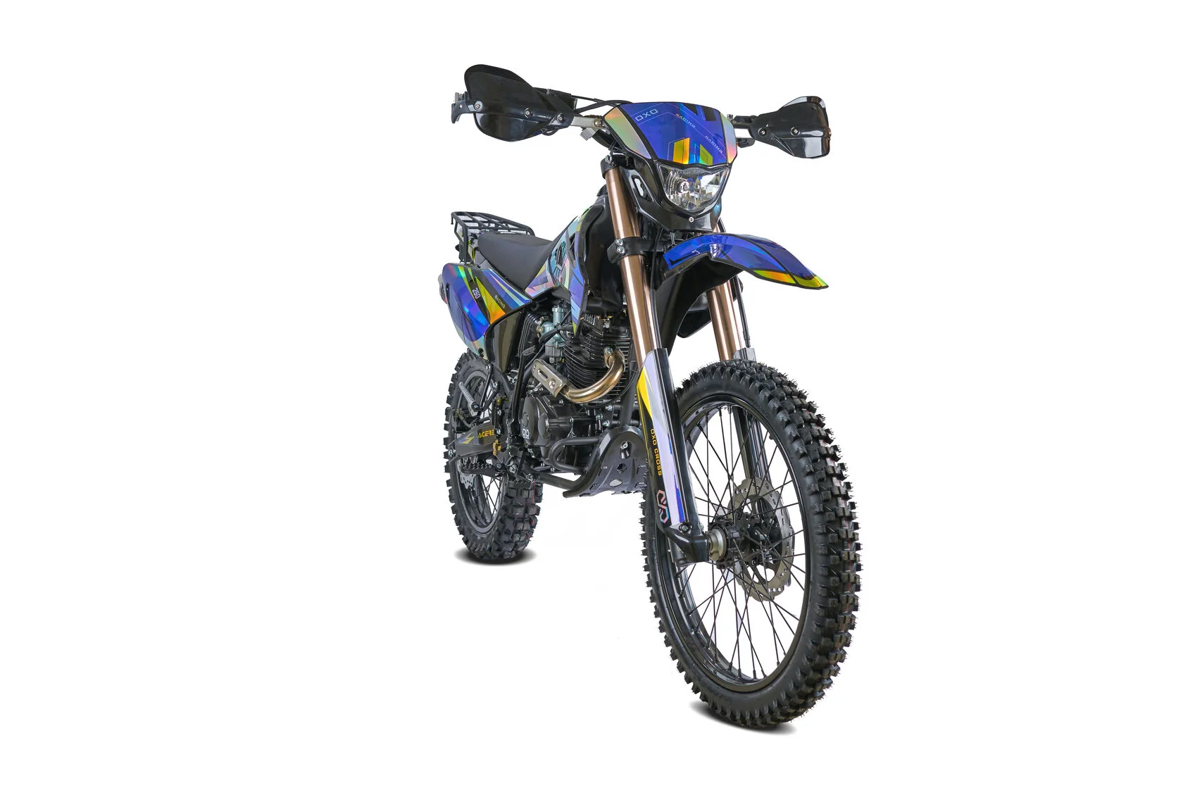 ДвигательДвигатель ZS165FMM - 4-тактный двигатель воздушного охлаждения объёмом 223 куб см с двумя клапанами, оснащён балансировочным валом, благодаря которому уменьшается избыточная вибрация, передаваемая от двигателя на раму и общую конструкцию техники. Характеризуется хорошей тягой с самых низов и лёгким пуском с помощью электростартера. Двигатель отлично зарекомендовал себя в качестве надёжного, универсального, неприхотливого мотора с хорошими характеристиками.РамаРама мотоцикла OXO производится из труб шестигранного сечения хром-молибденовой стали, которая является очень прочной и легкой. Геометрия рамы, благодаря правильно выверенному центру тяжести и углу наклона вилки - способствует наилучшей управляемости устойчивости мотоцикла на низкой скорости.ПодвескаПередняя вилка перевернутого типа. Мотоцикл LITE 250 снабжен моноамортизатором, который соединен посредством системы рычагов прогрессии. Система прогрессии, обеспечивает равномерную, мягкую работу и увеличивает длину рабочего хода подвески.КолесаРазмер передней покрышки: 80/100-21. Размер задней покрышки: 120/100-18. Они прекрасно себя ведут по песку и грязи, что позволяет райдеру отлично показать себя на пересеченной местностиТормозная системаТормозная система мотоцикла - полностью гидравлическая с армированными шлангами. Спереди и сзади установлен двухпоршневой суппорт. Данная конфигурация тормозных механизмов, позволит быстро и безопасно остановиться с максимальной скорости даже на бездорожье.РульВажная часть современного эндуро мотоцикла - усиленный руль переменного сечения Мотоцикл укомплектован панелью приборов.