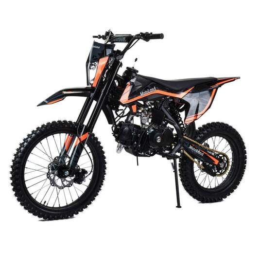 Встречайте долгожданную новинку на 150 куб. Питбайк Motoland GF 150 E идеален для поездок по грунтовым дорогам и бездорожью. Хорошо чувствует себя на мягком и среднем грунте, разгоняется до 90 км/ч. Оснащён спортивными траверсами и амортизаторами с регулировкой. весит всего 75 кг.Питбайк прост в управлении и не требует специального ухода, подойдёт как новичкам, так и любителям мотокросса.У питбайка отличный узнаваемый дизайн. Конструкция подчёркивает неуступчивый спортивный характер, который не остановится ни перед одним препятствием.Комбинированный прочный пластик не ломается при сгибании.Передняя подвеска — телескопическая вилка перевёрнутого типа с регулировками, которая отлично подходит для преодоления ям, и других неровностей плохих дорог или их отсутствия. Задняя подвеска маятниковая с моноамортизатором тоже с регулировкой.Питбайк оснащён карбюратором PZ 22 и одноцилиндровым четырёхтактным двигателем с воздушно-масляным охлаждением. Надёжный мотор 1P57YMJ с электростартером, мощностью 11 л. с. и объемом 150 см³ , установленный на усиленной стальной раме, коробка передач механическая, четырёхступенчатая.Отличная тормозная система: передний тормозной суппорт двухпоршневой, задний — однопоршневой. Ступицы алюминиевые, обода, маятник и звезды стальные, цепь 428H, усиленная, руль оснащен "подушкой" и установлен счетчик моточасов. Сиденье выполнено с противоскользящим покрытием. На главном тормозном цилиндре и выхлопной системе установлена защита из нержавеющей стали. В фаре установлена линзованная светодиодная лампа.