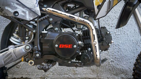 BSE EX 125e – это питбайк, созданный компанией BSE, предоставляющий отличные характеристики для любителей активного мотоциклетного опыта. С массой всего 75 кг и мощностью двигателя 10 л. с., этот бензиновый 1-цилиндровый 4-х тактный мотоцикл с легкостью подчеркивает свою маневренность и эффективность. Модель оснащена двигателем Zonsgshen ZS154FMI-2 объемом 125 см3, работающим по принципу 4-х тактного цикла, что обеспечивает плавное и экономичное движение. Система охлаждения воздушная, что способствует эффективному теплообмену в самых разнообразных условиях эксплуатации. BSE EX 125e обладает уникальной комбинацией передних и задних шин – 17" и 14" соответственно, что обеспечивает отличное сцепление с дорогой и устойчивость на разнообразных поверхностях. Система запуска включает кикстартер и электростартер, обеспечивая удобство использования в различных ситуациях. Телескопическая передняя подвеска и задний моноамортизатор гарантируют плавное и комфортное вождение на неровных дорогах. Дисковые тормоза спереди и сзади обеспечивают высокую степень безопасности и эффективный контроль при торможении. С трансмиссией типа механическая и системой подачи топлива через карбюратор, питбайк BSE EX 125e предоставляет надежность и простоту в управлении. Рама из стали обеспечивает прочность и долгий срок службы мотоцикла. Фары наличие питбайка делают его подходящим для использования в различных условиях освещения. Объем топливного бака составляет 3.5 литра, что позволяет ему преодолевать длинные расстояния на одном баке. Размеры в упаковке (142 х 43 х 64 см) и высота седла (860 мм) делают его компактным и удобным для хранения. Марка топлива – АИ-92, что является распространенным и доступным вариантом.