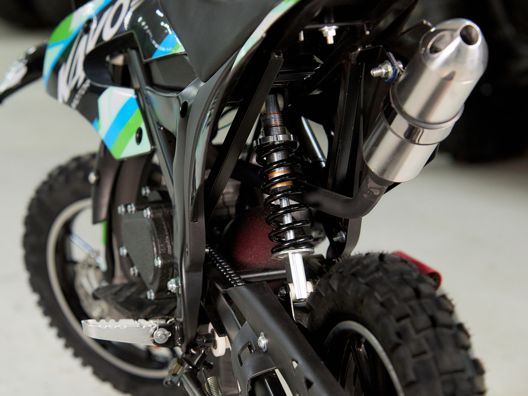 • Оснащён всем самым необходимым, прямо как “взрослая” кроссовая мототехника: динамическая подвеска, надёжные дисковые тормоза;